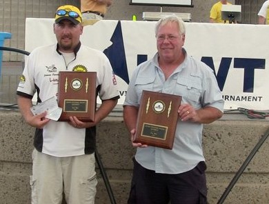 Synett & Glauch had biggest weight on Day 1 and on Day 2 which earned them $10,000 with a total weight of 45.56 lbs.  Their fish were caught from the same area all weekend long.  The bite wasn’t great but they grinded out each day and came up with two consistent bags of fish.  Their Day 1 bag was anchored by a 7.94 lb fish which earned them big fish for the weekend worth another $1000.  The key to their success was using Offshore Tackle’s planer board OR12 setup that allowed them to fish above the weeds and away from the boat.  Finishing second with two consistent days as well was Jason Doyon and Rob Laframboise from Sault Ste Marie.  Their total weight for the weekend was 40.17 lbs.  Both 1st and 2nd place teams spent most of the time on Lake George on the Canadian side down from the mouth of the Bar River.  Third place team of Chris and Rob Eusebi finished with 34.35 lbs and they spend most of their time at the St Joseph Island Bridge.  Big fish on Sunday was awarded to a team from Timmins, Denis Perrier and Matt Guacci with a 5.27 lb Walleye.  They finished a respectable fifth which is impressive for their first time on this system.